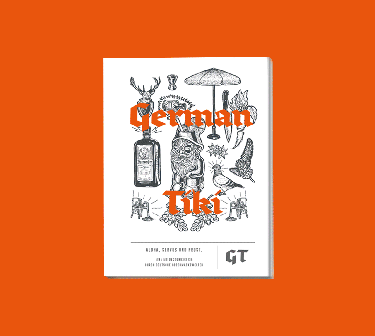 Für Jägermeister entwickelte ich gemeinsam mit der Berliner Agentur sbstnz GmbH & Co. KG die erste deutsche Tiki-Welt und die Gestaltung eines einzigartigen Tiki-Cocktail-Rezeptbuchs. German Tiki ist die Antwort auf die Frage, wie Sehnsucht heute schmeckt – nicht nach Südsee, sondern nach Streuobstwiese, Apfelkuchen und Kräutern aus dem eigenen Garten. In Zusammenarbeit mit Jägermeister entstand ein umfangreich gestaltetes Buch, das Tiki-Kultur nicht kopiert, sondern umdeutet: als fantastische, verspielte Reise durch deutsche Regionen, Erinnerungen und Geschmackserlebnisse.